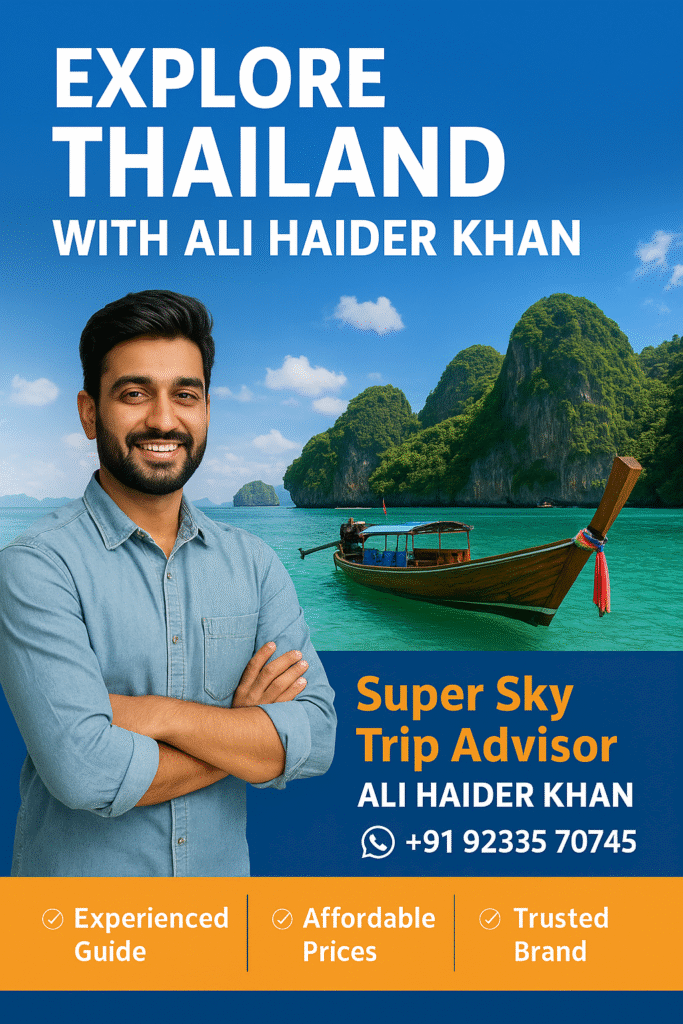 β¨ So, if Thailand is on your bucket list, let Ali Haider Khan make it happen for you. Affordable, enjoyable, and unforgettable β thatβs what your journey with Super Sky Trip Advisor promises!